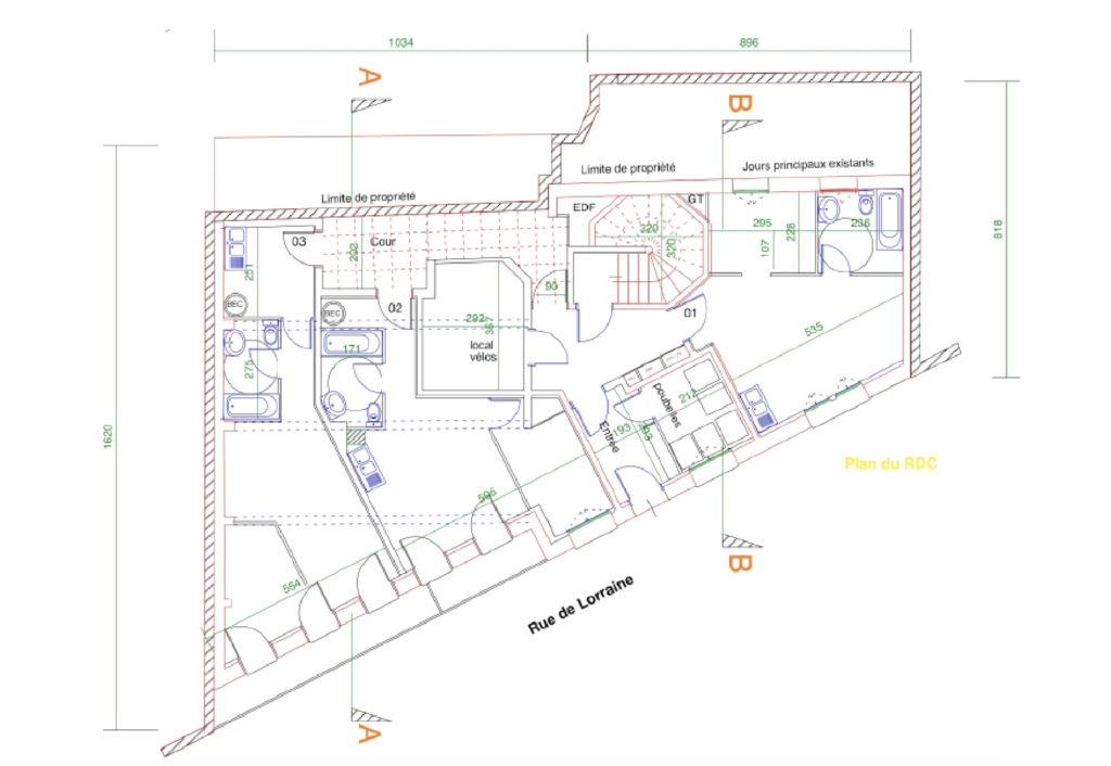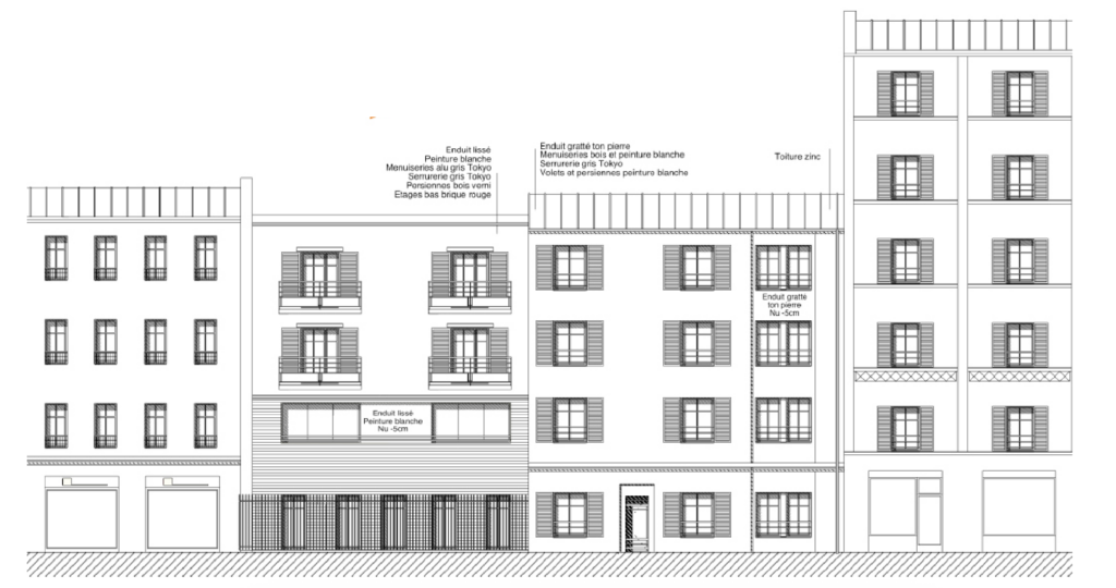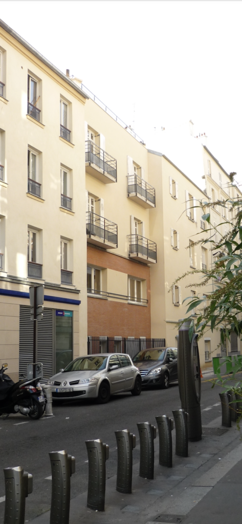 Sur fond de parcelle en plein Paris, surélévation d’un ancien bâtiment industriel en deux bâtiments distincts de façon à pérenniser la discontinuité urbaine du site.